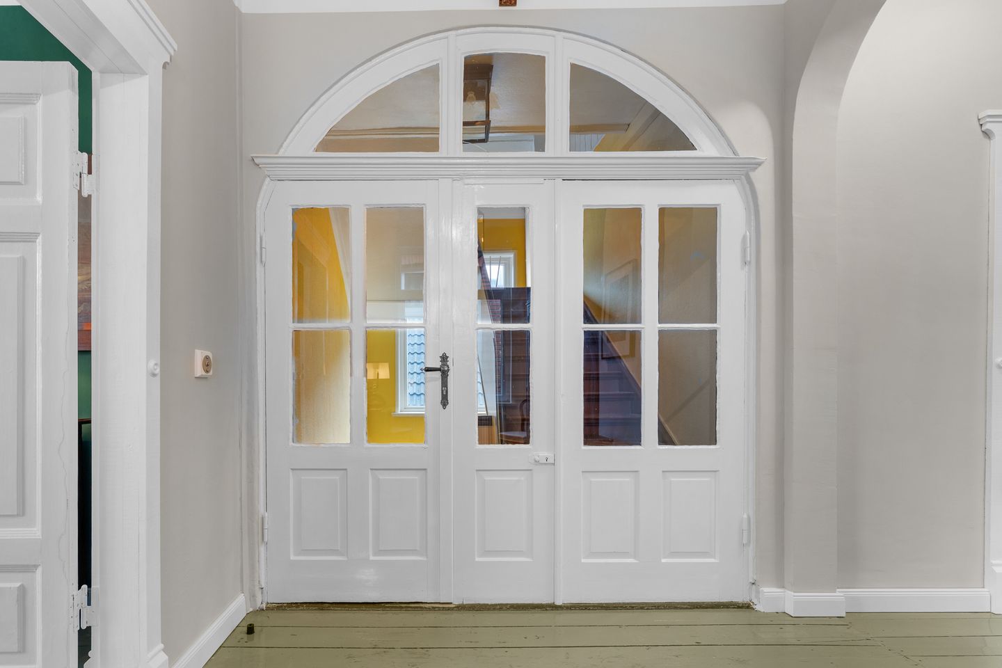 Hohe Decken verleihen der Wohnung Großzügigkeit und Eleganz. Man betritt sie durch eine originale Altbautür mit Rundbögen und Glaselementen, die den Ton vorgibt für das, was folgt: eine von Grund auf sanierte und neu interpretierte Wohnung, altbaugerecht und mit viel Gespür für Details.